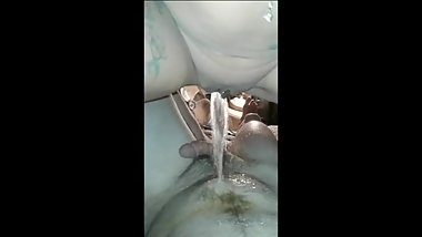 Cute brunette shaves and pees in