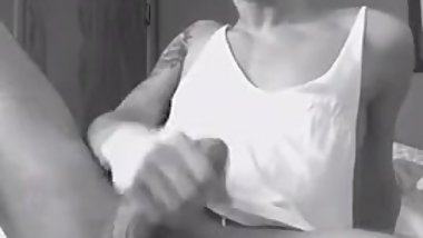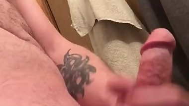 Solo jerking cock with lube, cumshot (sry for shaky camera)